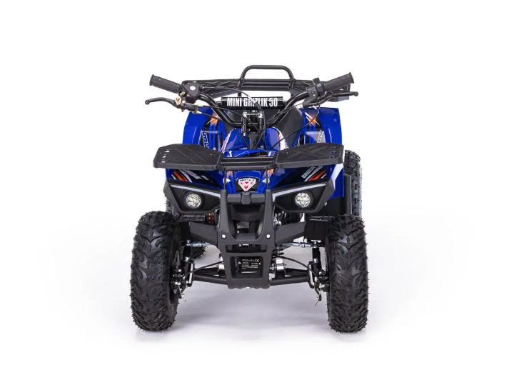 Рама из прочной стали и металлические колесные диски обеспечивают долговечность конструкции, а дорожный просвет в 55 мм позволяет легко преодолевать небольшие препятствия на пути. Этот квадроцикл отлично подходит для активного отдыха на природе и в условиях легкого бездорожья.