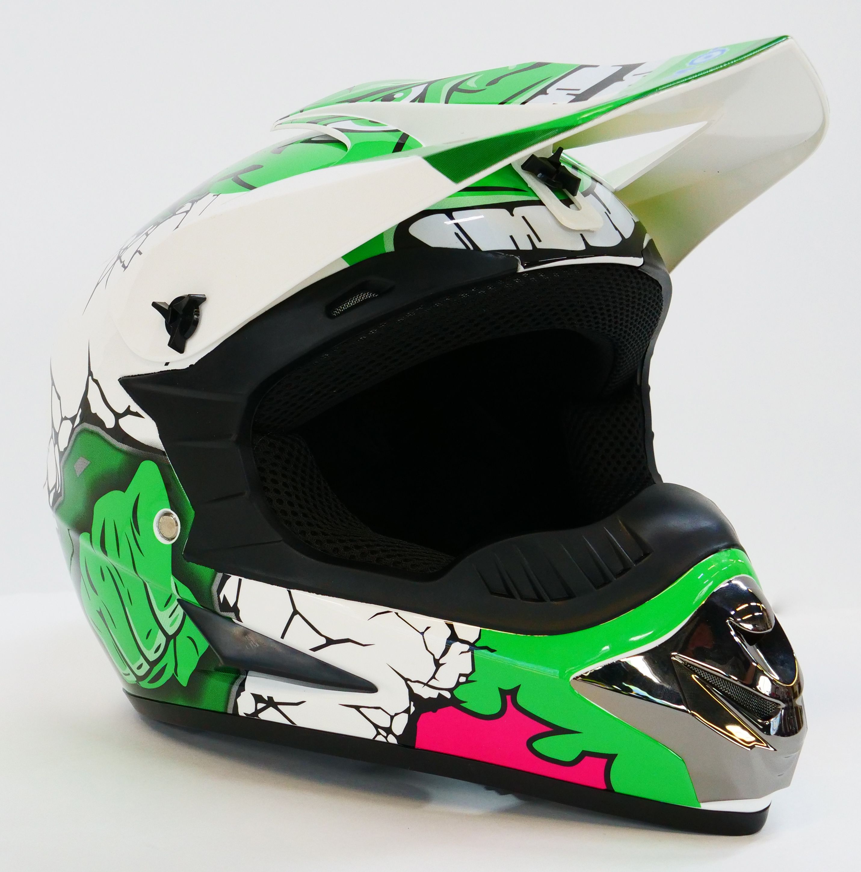 Шлем кроссовый MOTAX глянцево-белый-зеленый в Челябинске