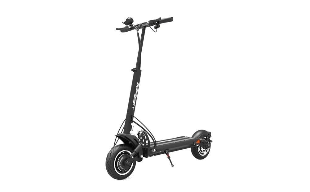 - Колёса у этого электросамоката диаметром 10 дюймов, они широкие и устойчивые