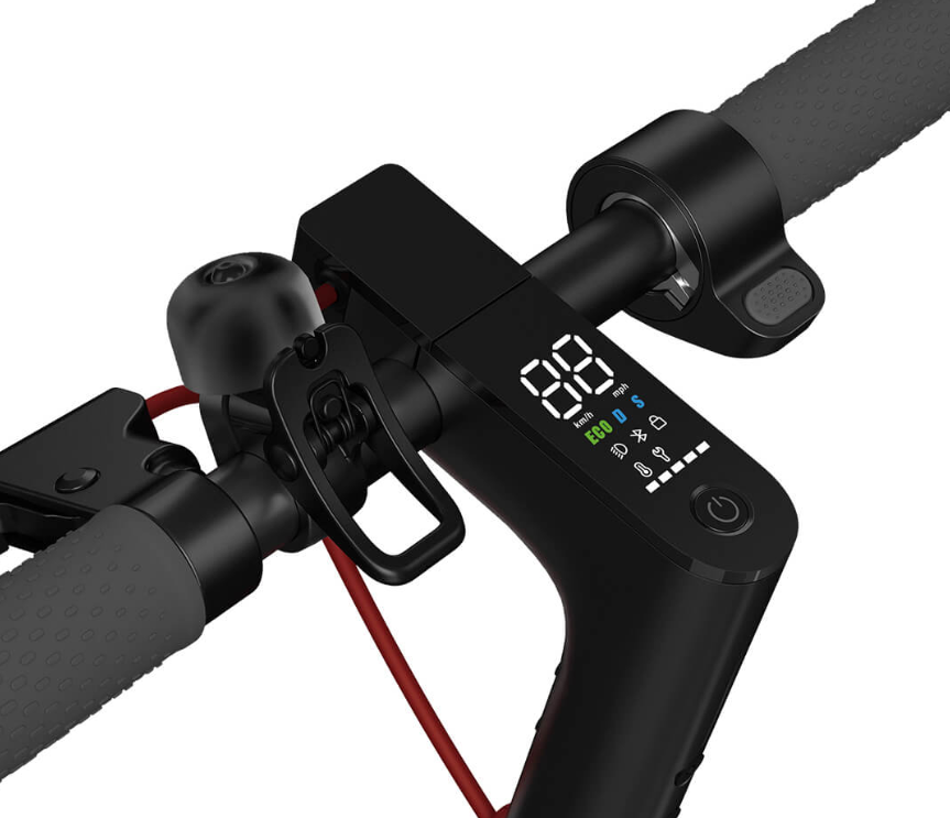 Тормозная система в этой модели самоката подобна автомобильной. Передний рекуперативный тормоз подзарядит батарею, а задний дисковый обеспечит быструю остановку.
