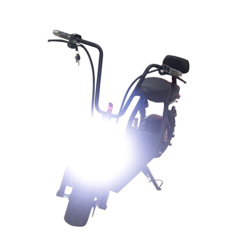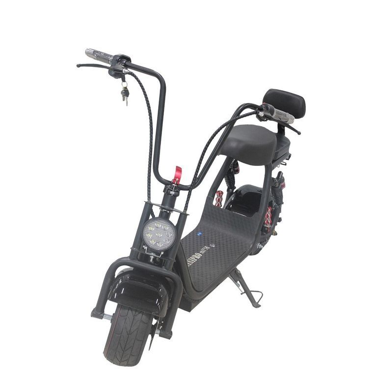 За скорость 60 км/ч отвечает 800 Вт мотор. При необходимости остановиться или сбавить разгон, нажмите на тормозной курок. У электроскутера minipro mi716 тормоз задний дисковый. На одном заряде скутер проедет до 55 километров, благодаря батарее 16 Ач. Чтобы зарядить аккумулятор, понадобится 7 часов.