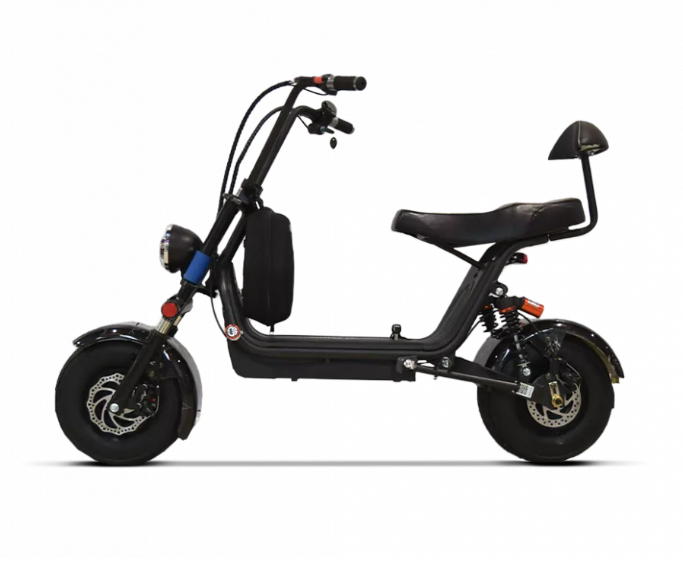 - Двойное сиденье — на электроскутере можно кататься вдвоем. Для пассажира есть удобная спинка сзади.