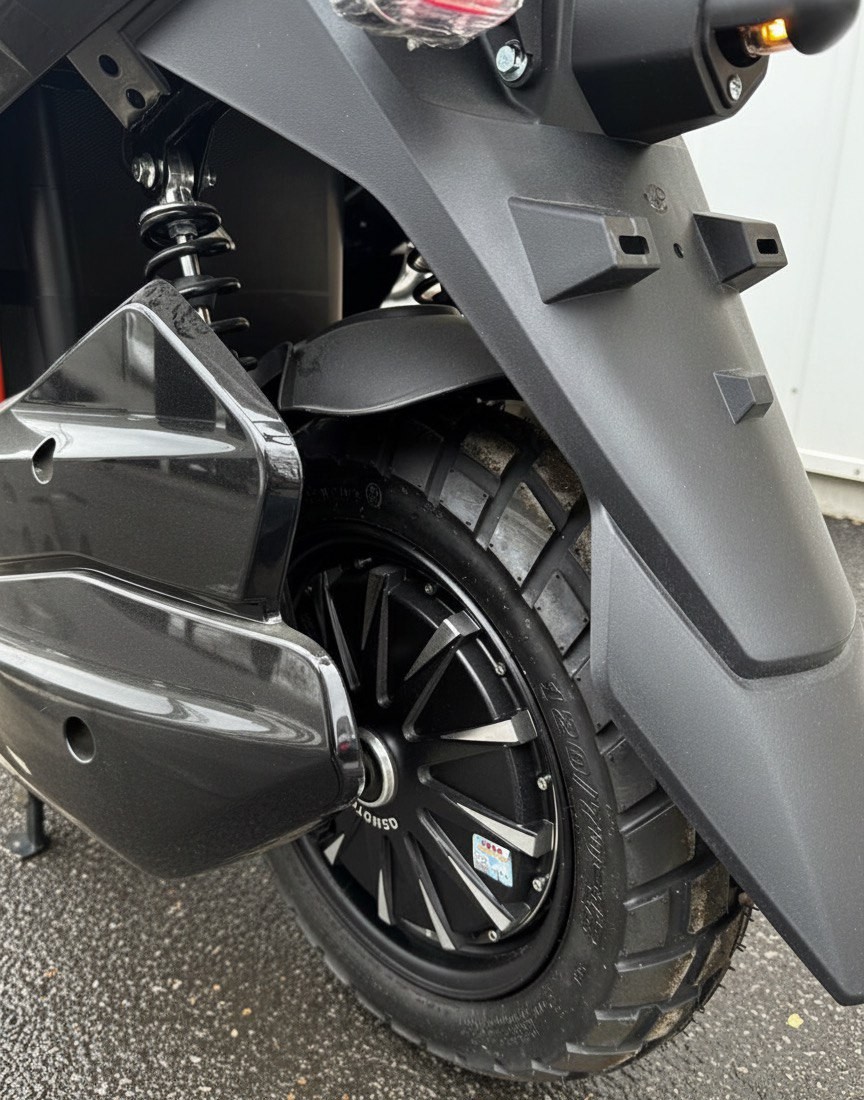Электроскутер GT TANK 01 PRO оснащен высокооборотистым двигателем мощностью 3000 Вт, работающим от бортовой сети напряжением 72 В. Такая конфигурация обеспечивает высокий крутящий момент и позволяет скутеру разгоняться до 90 км/ч даже при значительной загрузке. Силовая установка рассчитана на интенсивную эксплуатацию и сохраняет стабильные характеристики на протяжении всего срока службы.