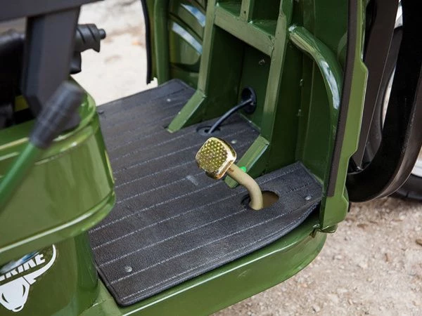 Рама из высокоуглеродистой стали обеспечивает прочность и долговечность конструкции, что крайне важно для транспортного средства, которое будет использоваться в различных условиях. Этот трицикл спроектирован так, чтобы выдерживать значительные нагрузки и служить долго.