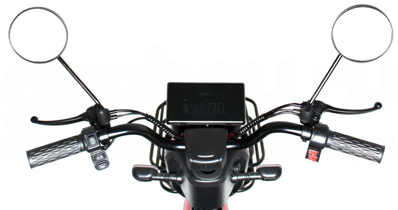 Скутер также оснащен ярким передним фонарем и задними стоп-огнями, а также повторителями поворотников, что значительно повышает видимость в темное время суток. Ручка газа мотоциклетного типа позволяет точно регулировать скорость, добавляя удобства в процессе вождения.