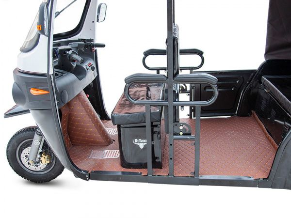 Электротрицикл Rutrike Рикша NEW — это идеальное средство передвижения для комфортной перевозки пассажиров. Он оснащен мощным электрическим двигателем на 1800 Вт и задним редукторным приводом, что обеспечивает отличные динамические характеристики и маневренность, особенно в городских условиях.