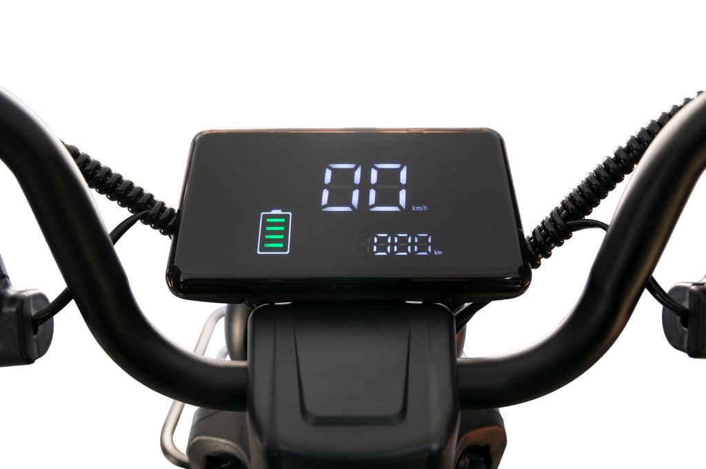 На модели установлен большой LED-дисплей, отображающий скорость, заряд батареи, индикатор света и пройденную дистанцию.