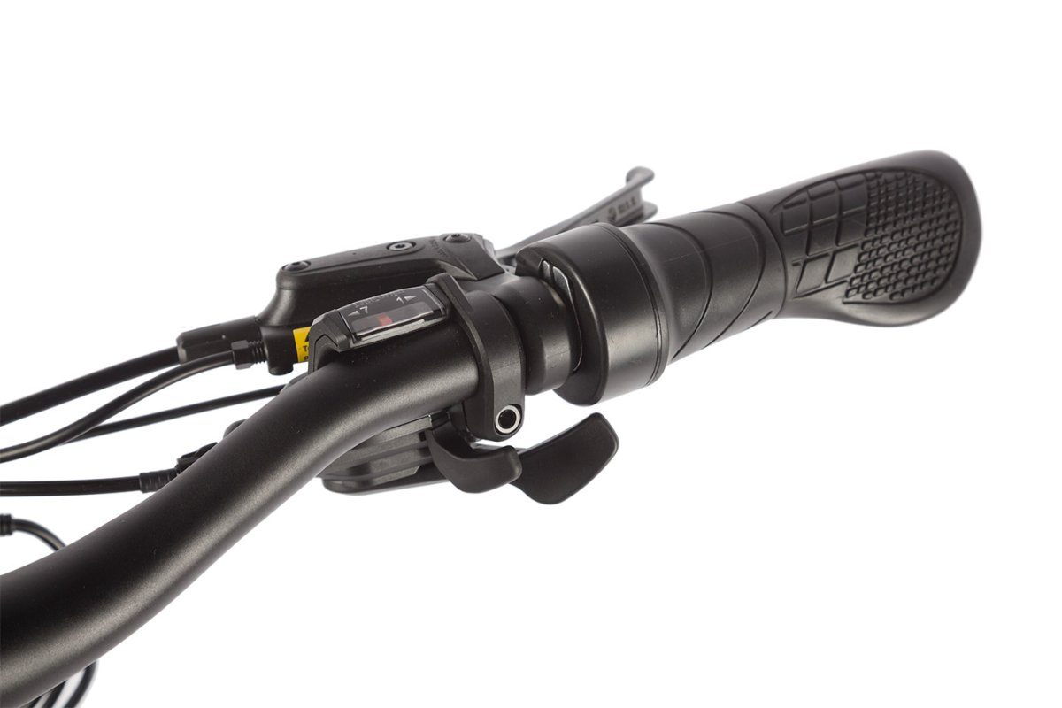 Электровелосипед оснащен дисковыми гидравлическими тормозами, которые обеспечивают быструю и эффективную остановку. Эта система повышает уровень безопасности и уверенности во время поездок, особенно на сложных маршрутах.