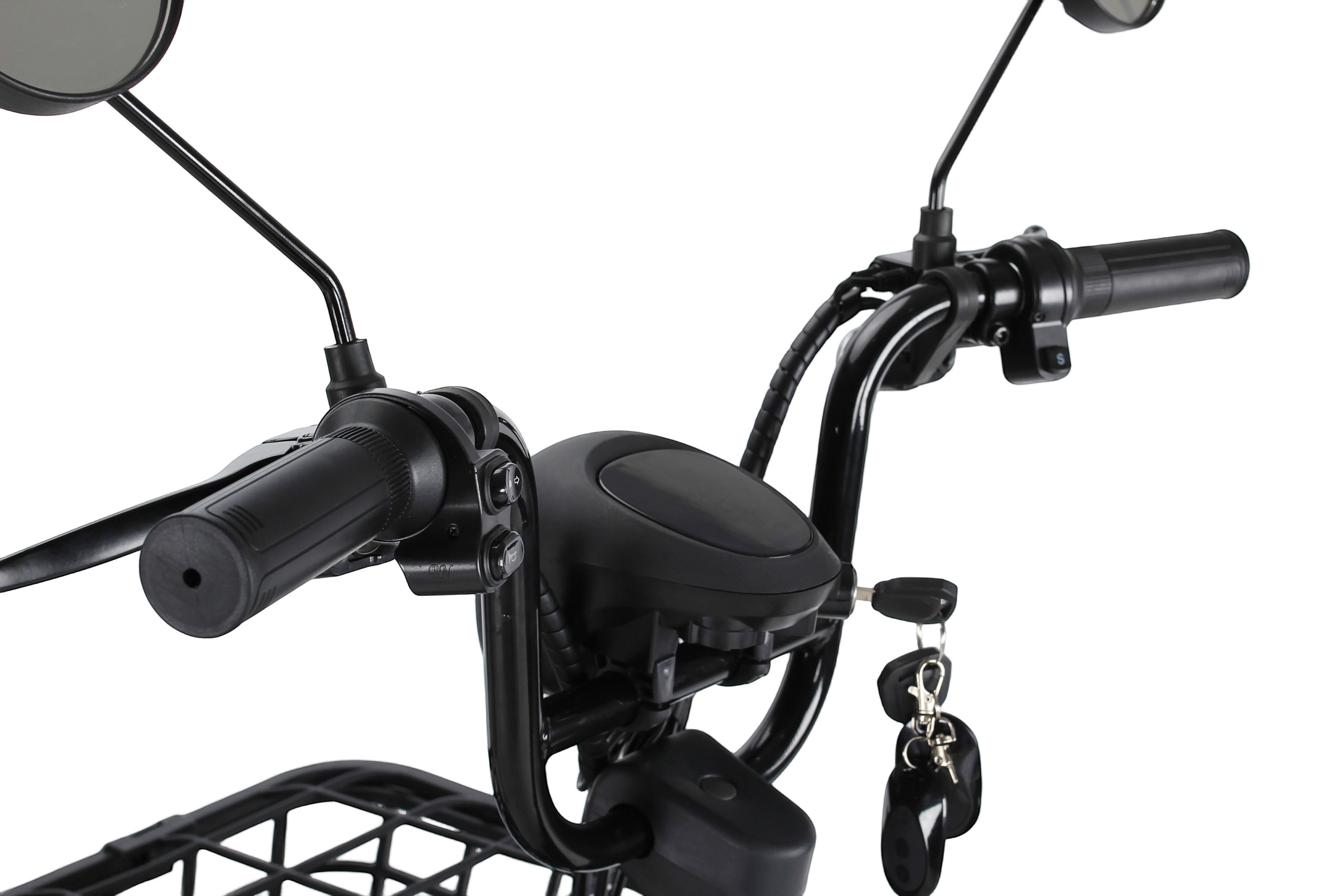Бесщеточный мотор Houhua мощностью 500 Вт работает под управлением интеллектуального контроллера 48 В 25 А 9G. Такая конфигурация обеспечивает высокий крутящий момент на низких оборотах, позволяя уверенно стартовать даже при полной загрузке. Максимальная скорость достигает 40 км/ч, с возможностью программного ограничения до 25 км/ч для соответствия местным нормативам.