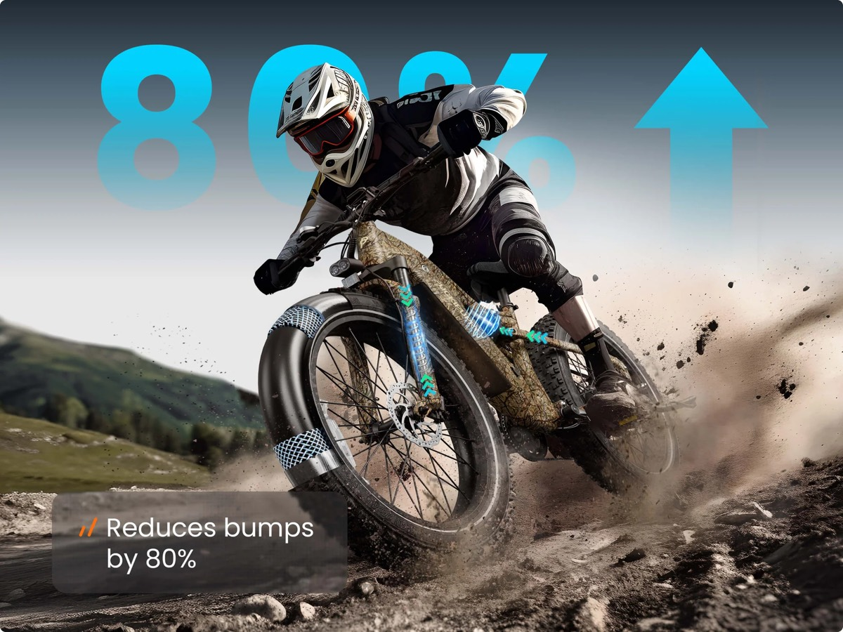 26-дюймовые колёса с широкими покрышками толщиной 4 дюйма созданы для езды по бездорожью. Они уверенно идут по песку, снегу, грязи и гравию, не проваливаясь и не теряя сцепления. Агрессивный протектор обеспечивает надёжное сцепление с любыми поверхностями — от мокрого асфальта до рыхлого грунта. Большой диаметр колёс помогает легко преодолевать ямы, корни и камни, делая поездку комфортной даже на самых сложных участках.