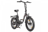 Отличное решение для тех, кто хочет кататься не только по городским улицам, но и загородным трассам, лесным тропкам и пересечённой местности, но при этом не хочет приобретать широкий и брутальный фэтбайк: модель построена на лёгкой удобной складной алюминиевой раме и поставлена на более широкие, чем у обычных электровелосипедов колёса 20" х 3,00", что несомненно прибавляет солидности во внешнем виде и проходимости на сложных участках вашего пути, особенно в сочетании с мощным электромотором 500 ватт. А аккумулятор с напряжением 48 вольт и ёмкостью 13 Ач сможет обеспечить до 50 километров пробега без подзарядки.