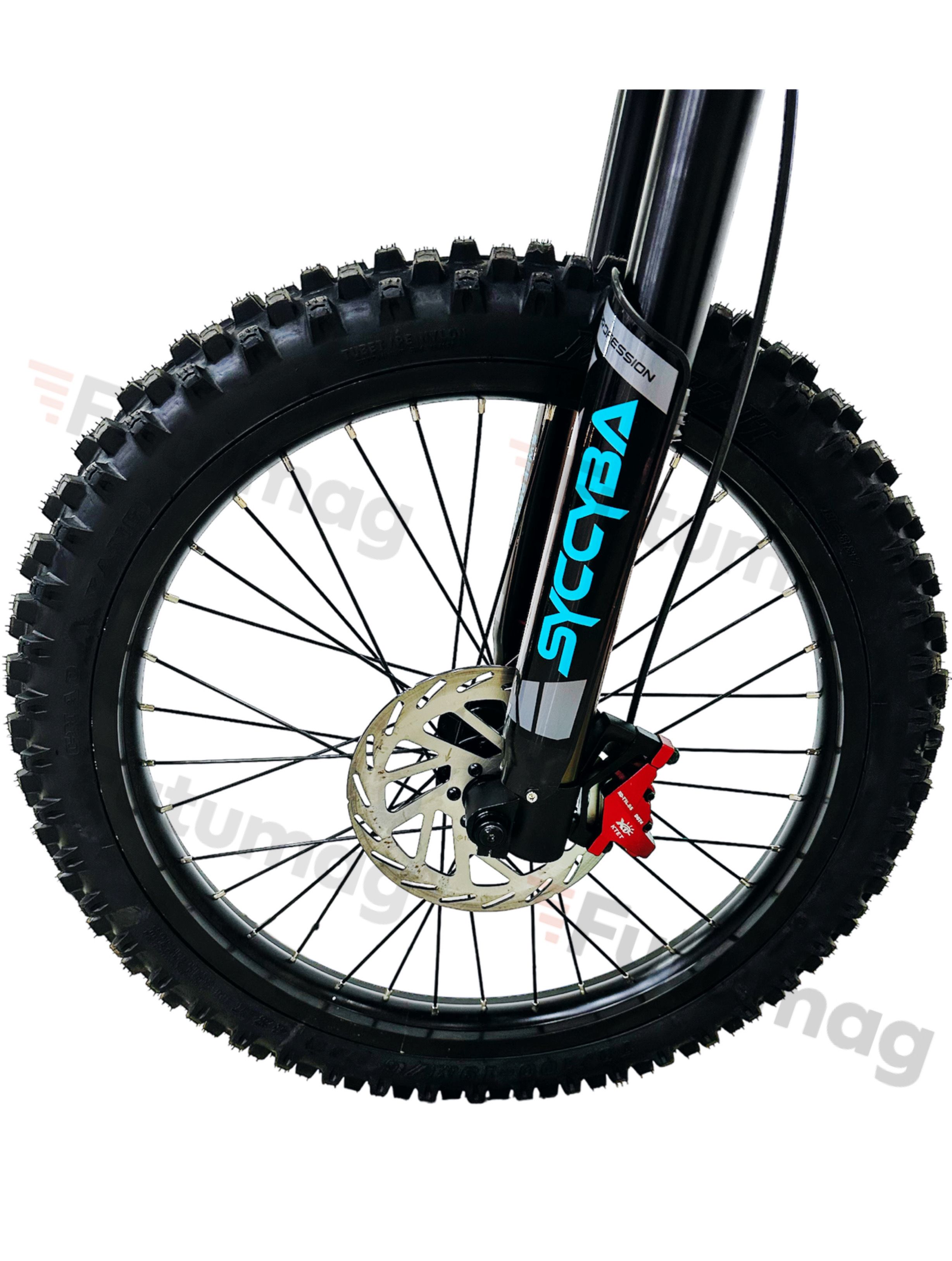 Электровелосипед Syccyba Impulse Sport – это интересная новинка, заслуживающая внимания потенциальных любителей быстрой и функциональной техники. Велосипед оснащен электродвигателем мощностью 3000 Вт , это позволяет быстро разгонять устройство до 80 км/ч. Потенциала аккумуляторной батареи Li-ion 48V/30Ah будет достаточно для преодоления расстояния в 80 км. Восстановить зарядку можно в течение 10 часов от стандартного источника электроэнергии. Масса изделия 40 кг, грузоподъемность 130 кг. Рама изготовлена из облегченного алюминиевого сплава, что упрощает процесс эксплуатации, перевозки и хранения изделия. Отсутствие складного механизма делает раму более прочной и устойчивой к механическим повреждениям.