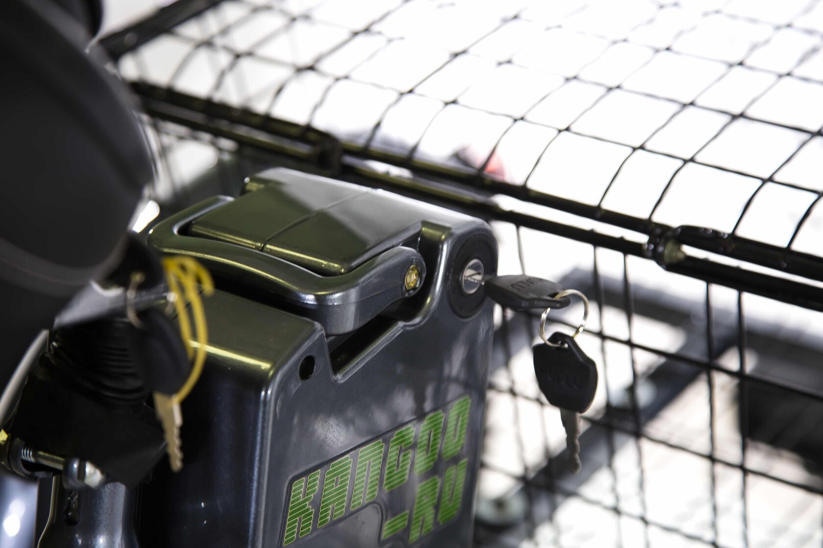 С электромотором мощностью 700 Ватт, Kangoo-RU способен развивать скорость до 35 км/ч, обеспечивая быструю и комфортную езду. Литий-ионная батарея на 48 Вольт и 13 Ампер-часов позволяет проезжать до 55 километров на одной зарядке, что делает его идеальным для длительных поездок без необходимости частой подзарядки.