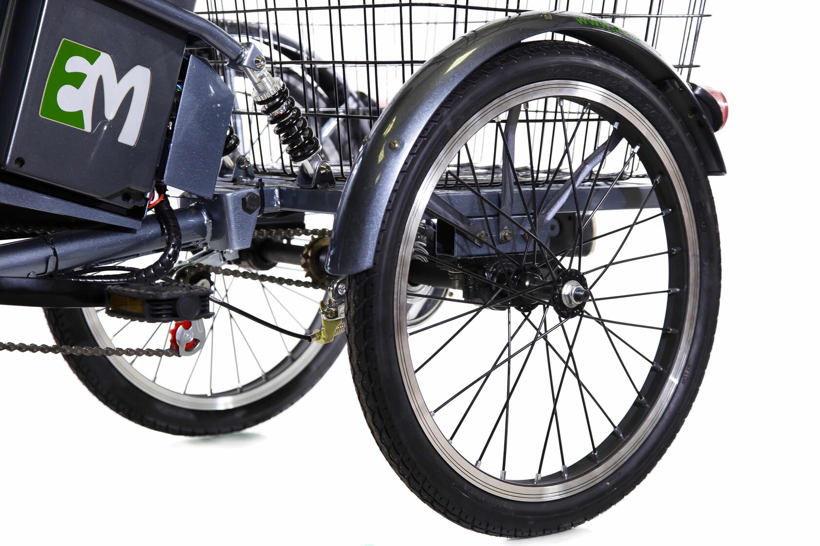 Этот электровелосипед особенно подходит для пожилых людей, так как его трехколесная конструкция обеспечивает отличную устойчивость и безопасность, позволяя сосредоточиться на дороге.