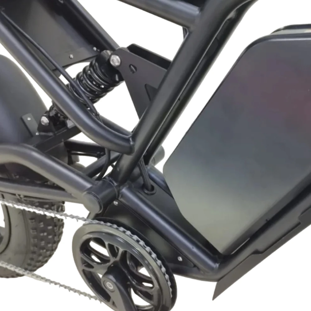 Двигатель мощностью 1000 ватт гарантирует отличную динамику, позволяя легко преодолевать подъемы и сложные участки дороги. Время зарядки составляет всего 4-5 часов, что позволяет быстро подготовить велосипед к следующему использованию, не тратя много времени на ожидание.