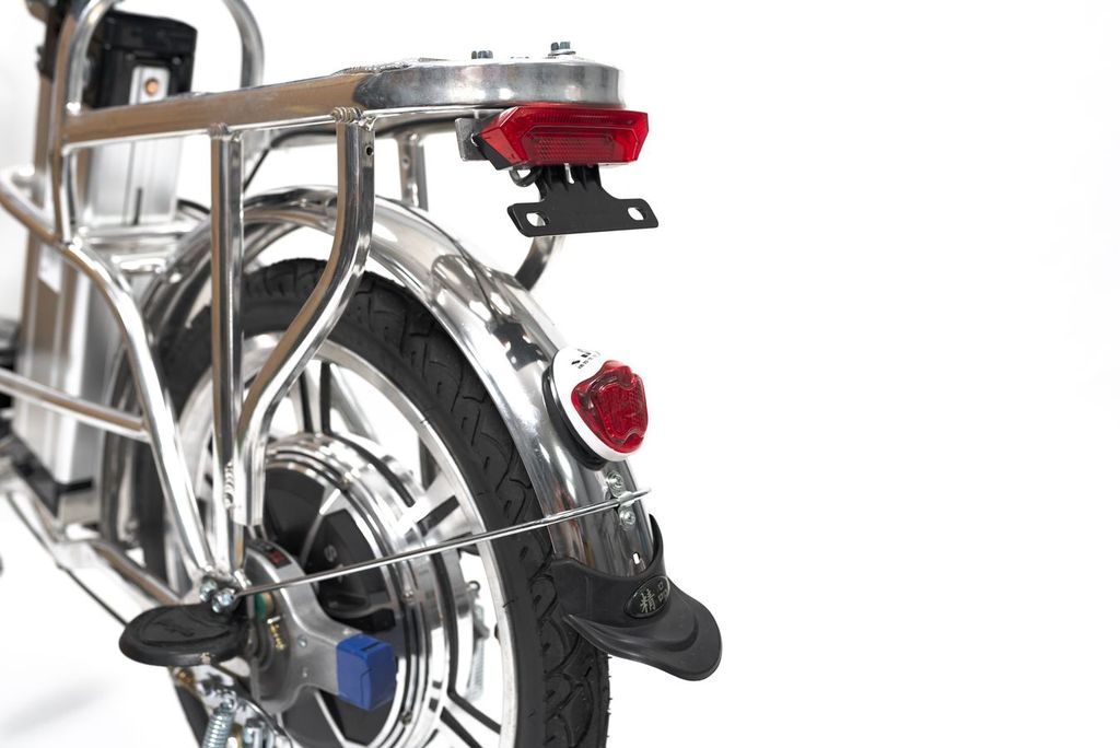 - Мотор-колесо на 500 Вт позволяет развивать скорость до 45 км/ч.