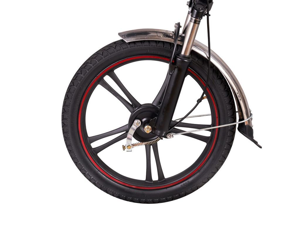 - Мощное мотор-колесо 240Вт - права ни к чему, позволяющие разгоняться до 50км/ч;
