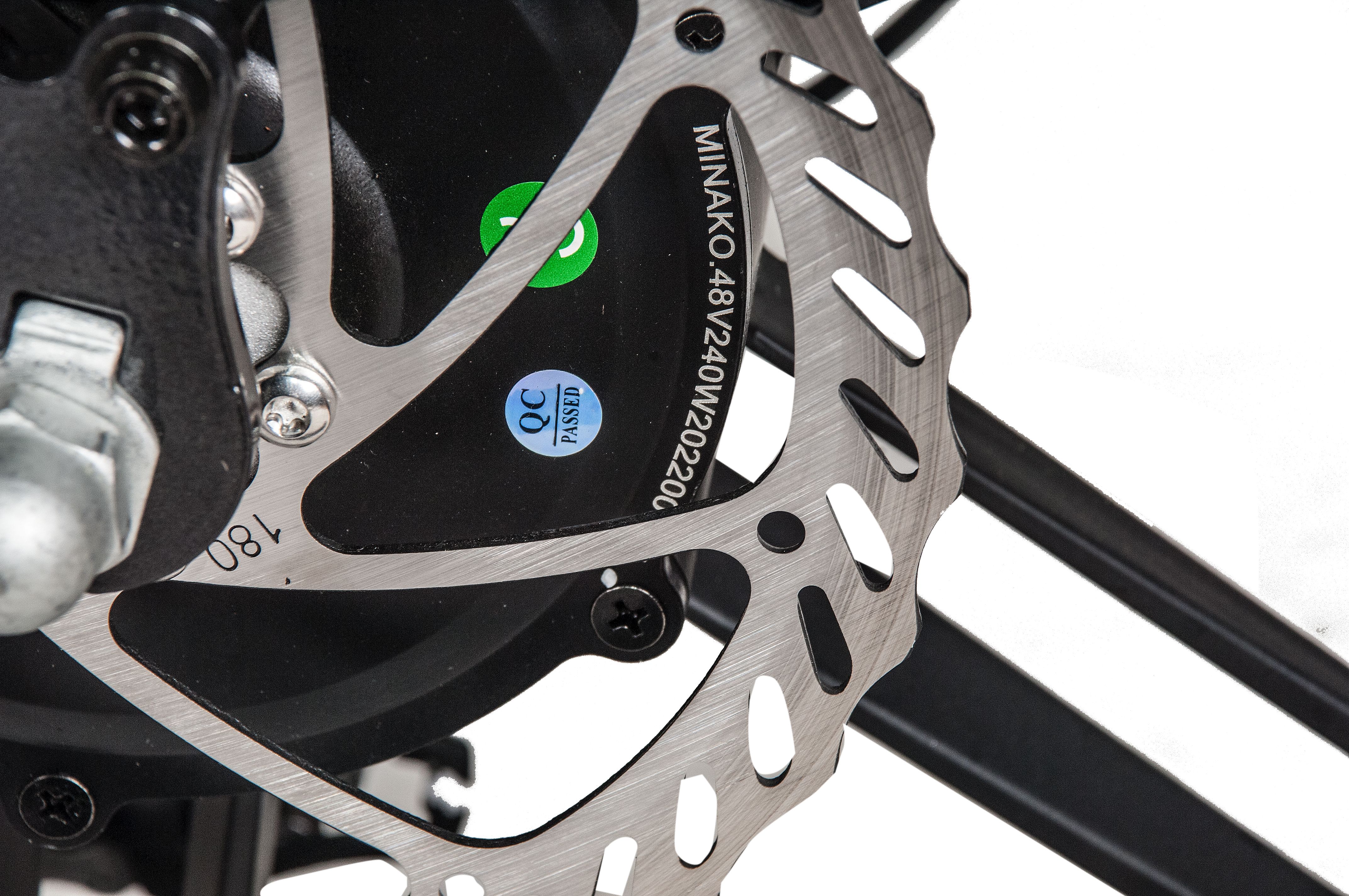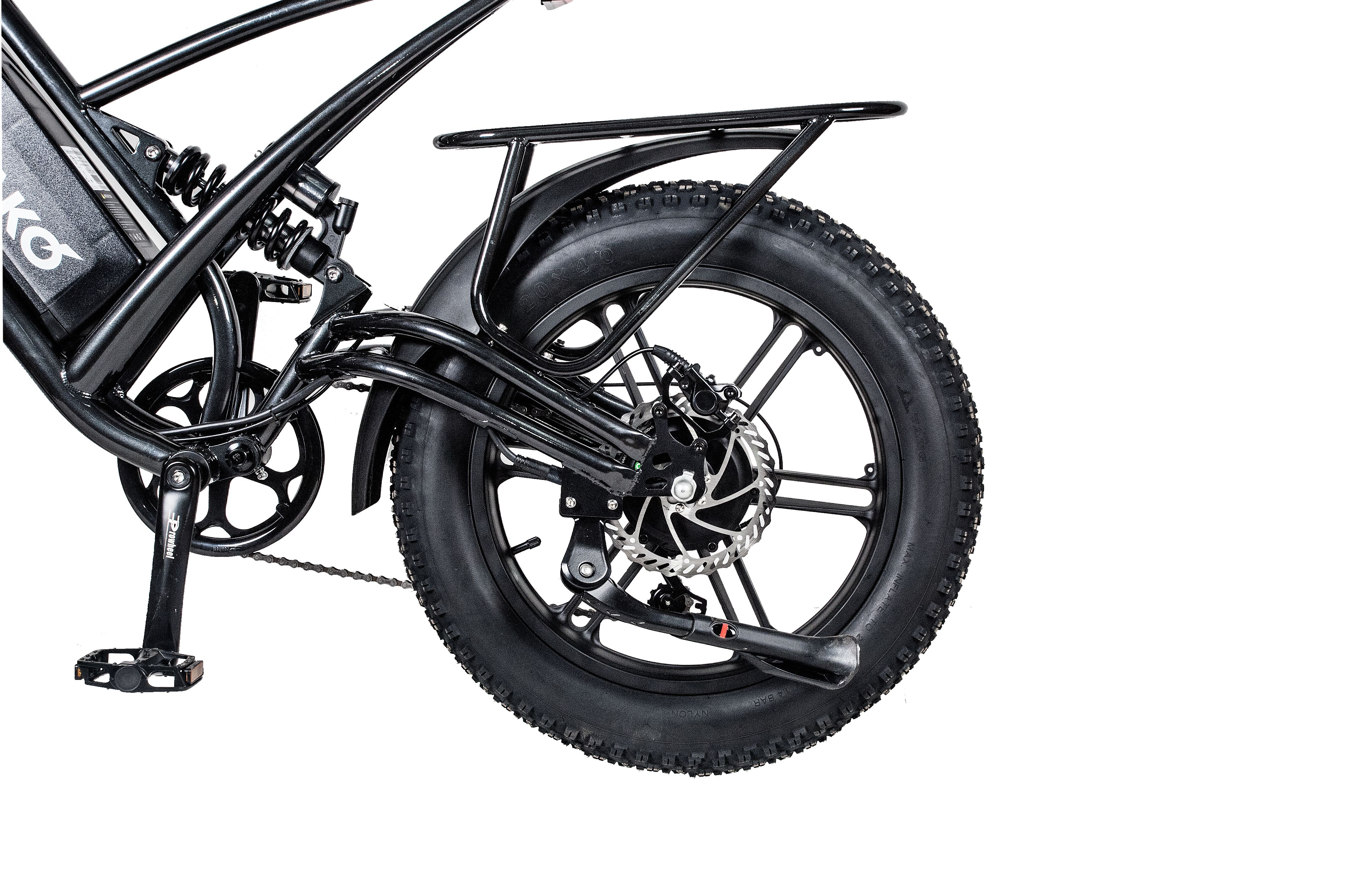 Для 100% подзарядки батареи понадобится всего 10 часов. Электрический велосипед имеет широкие надувные 20-дюймовые колёса и амортизационную систему спереди и сзади, благодаря чему он подходит для поездок по шоссе и даже по пересечённой местности. Модель оснащена качественными шинами с глубоким внедорожным протектором, который создаёт отличное сцепление с дорогой.