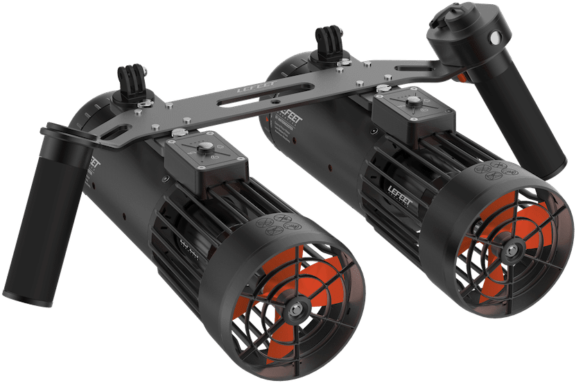 Для опытных дайвером Lefeet предлагает легкое решение, два подводных скутера Лифит легко соединяются в единое устройство, при этом удоство управления и маневрирования остается на высочайшем уровне. Максимальная скорость сдвоенного скутера увеличится до 2.3 м/с ( 8.2 км/ч)